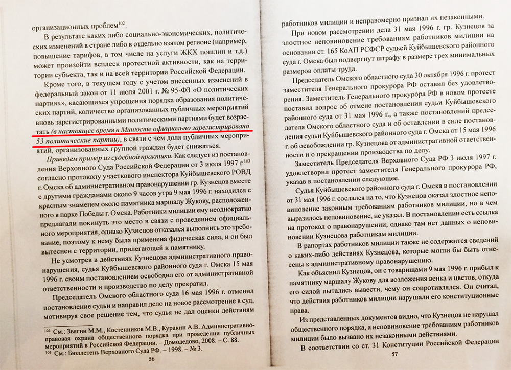 Увы, это опровергается текстом лжекниги ректора Прокофьева. В ней говорится о том, что уже произошло упрощение образования политических партий. Но таковое упрощение состоялось только в 2012 году (ФЗ от 02.04.2012 №28). В книге говорится о том, что благодаря состоявшемуся упрощению законодательства в России «сейчас» 53 политических партии.